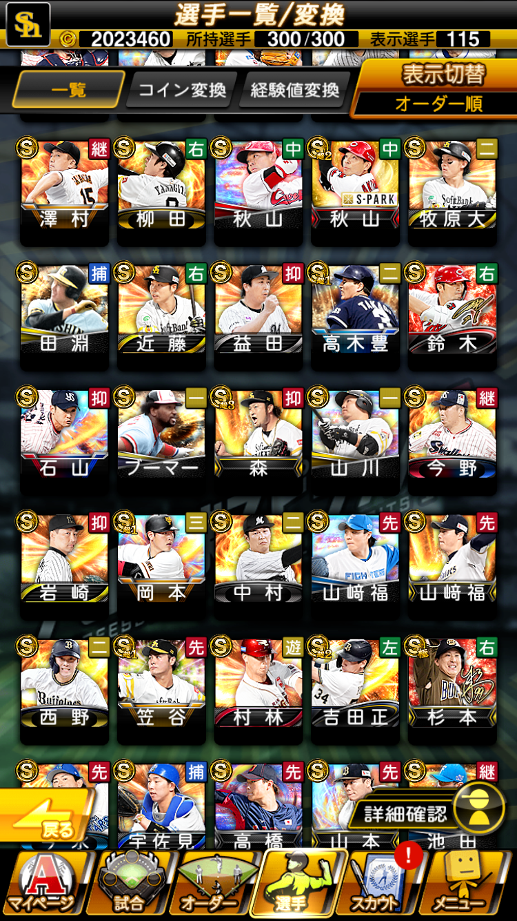 侍J大谷(投手・打者)、ゴジラ松井、イチロー、ダルビッシュ、侍J村上、侍J佐々木朗希、侍J宮城、ダイエー城島、近鉄中村ノリなど、近年のスターと往年のスターが勢揃い!! Aランクは151人、Sランクは118人、Sランク限界突破コーチ12枚、Sランク特訓コーチ94枚あります! SB選手も豊富で、能力値の高い2021柳田はスピ解放済み、山川、TH近藤、今宮、周東なども!